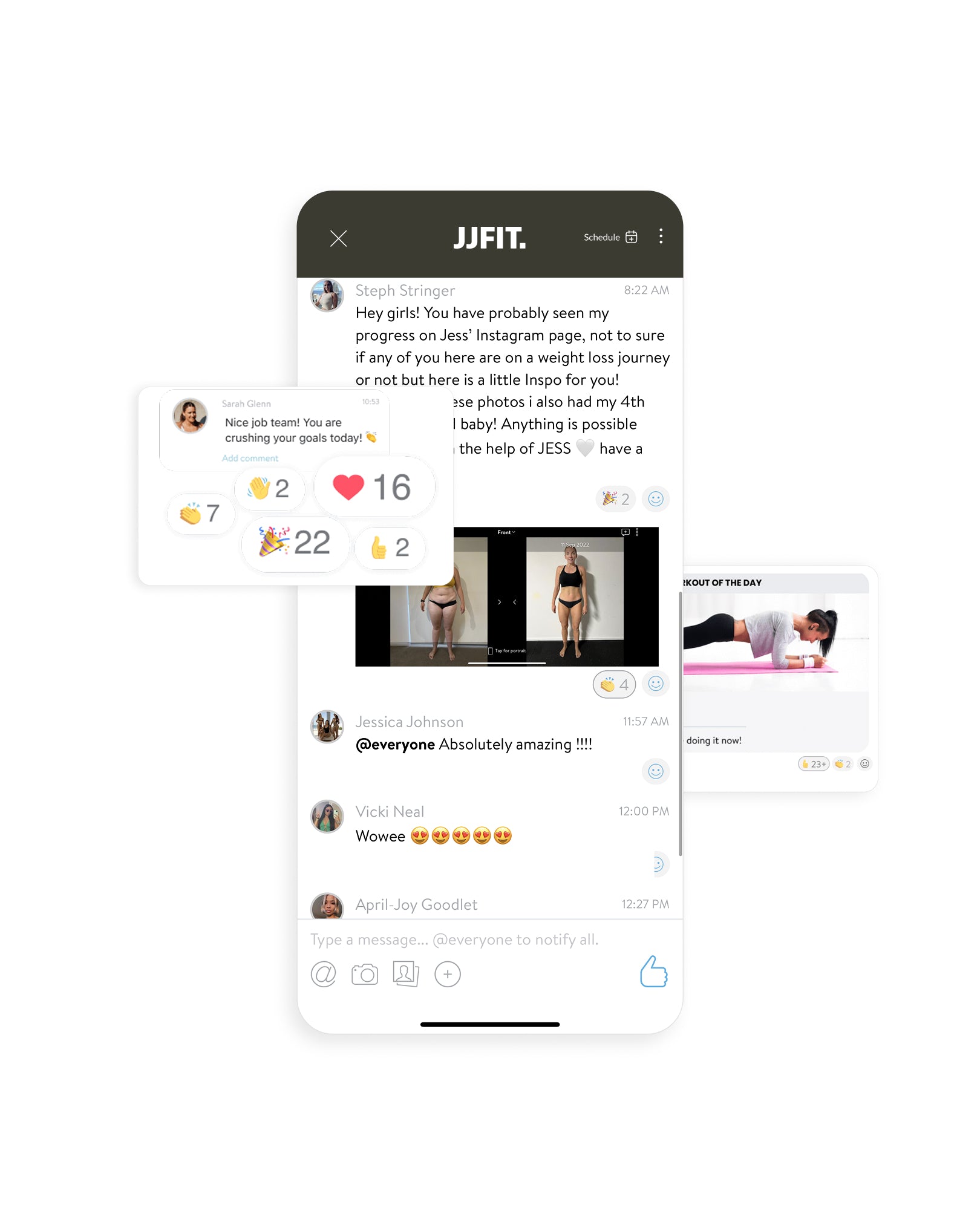 Connect with like-minded women inside the JJFIT community, share wins, stay motivated, and lean on Jess and the coaching team for guidance whenever you need it. It’s accountability and encouragement, right in your pocket.